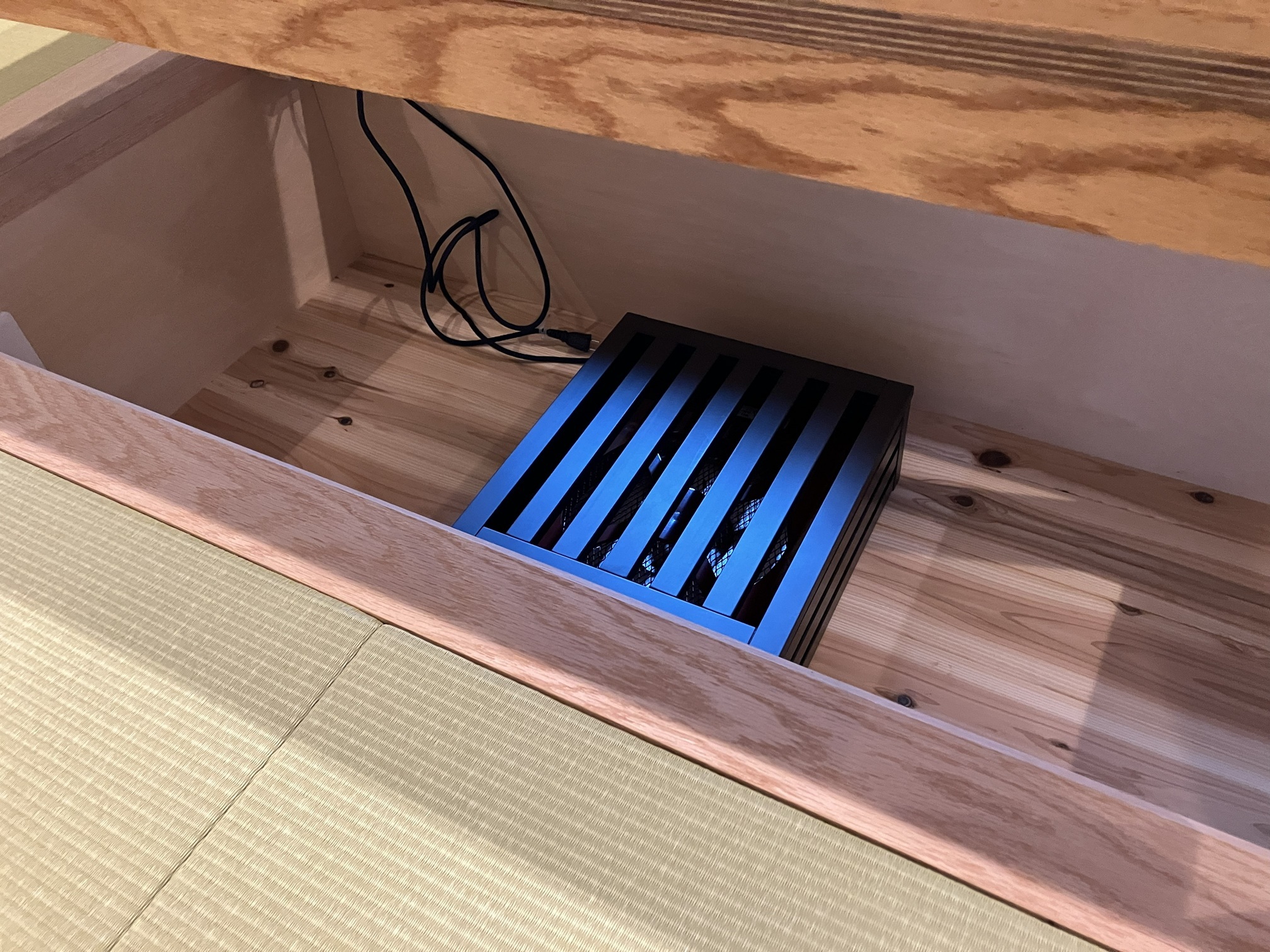 ヒーターは床置き式を採用しました。置いているだけなので簡単に取り出せ掃除もしやすくなっています。