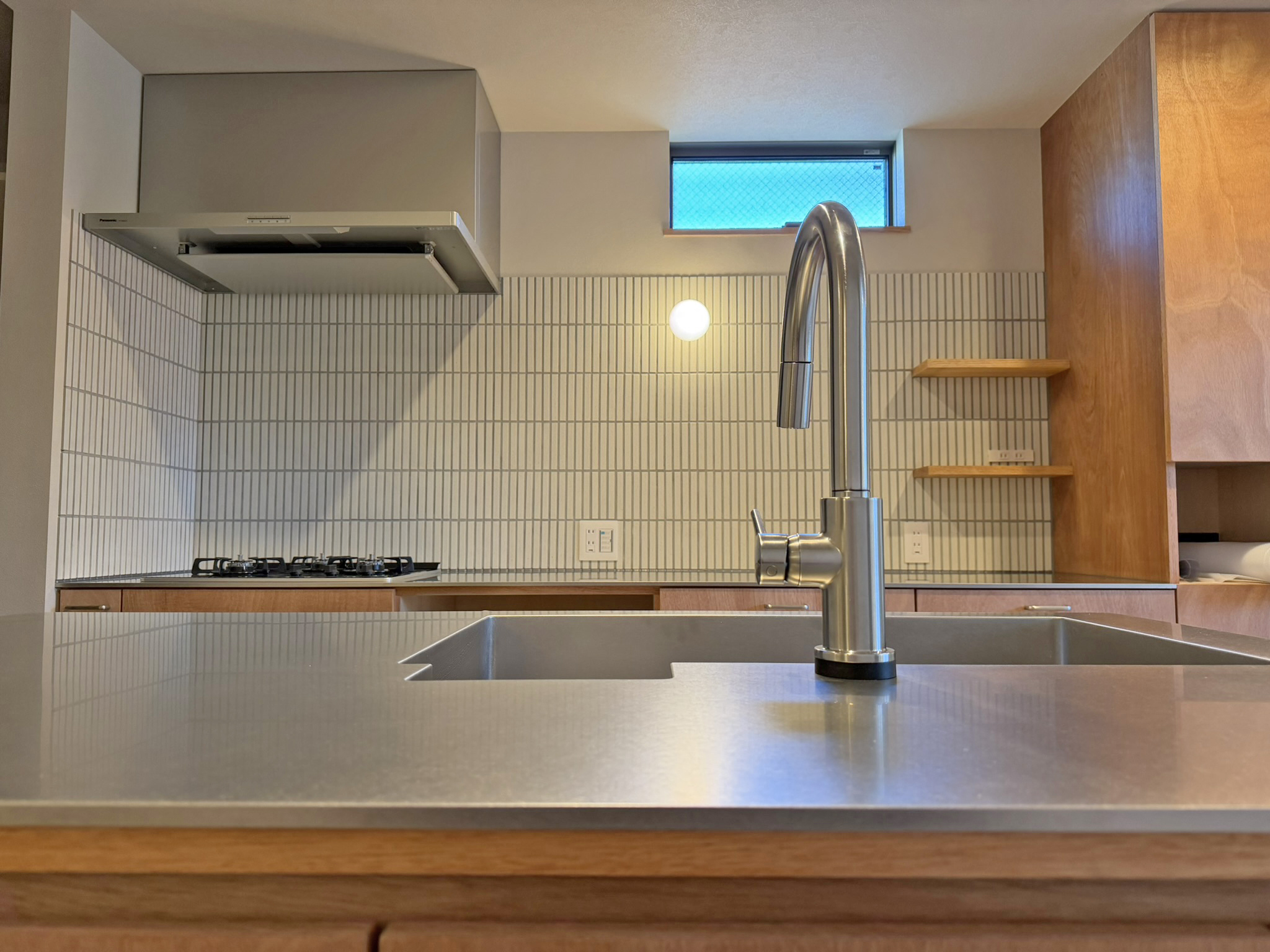 16坪の狭小地での3階建てへの建て替えの計画。造作のキッチンや洗面など住み手のライフスタイルに合わせた唯一無二の設計となっており規格住宅とは違う注文住宅だからこそ叶えられその土地、住み手ごとの応えを感じて頂ける住まいとなっています。