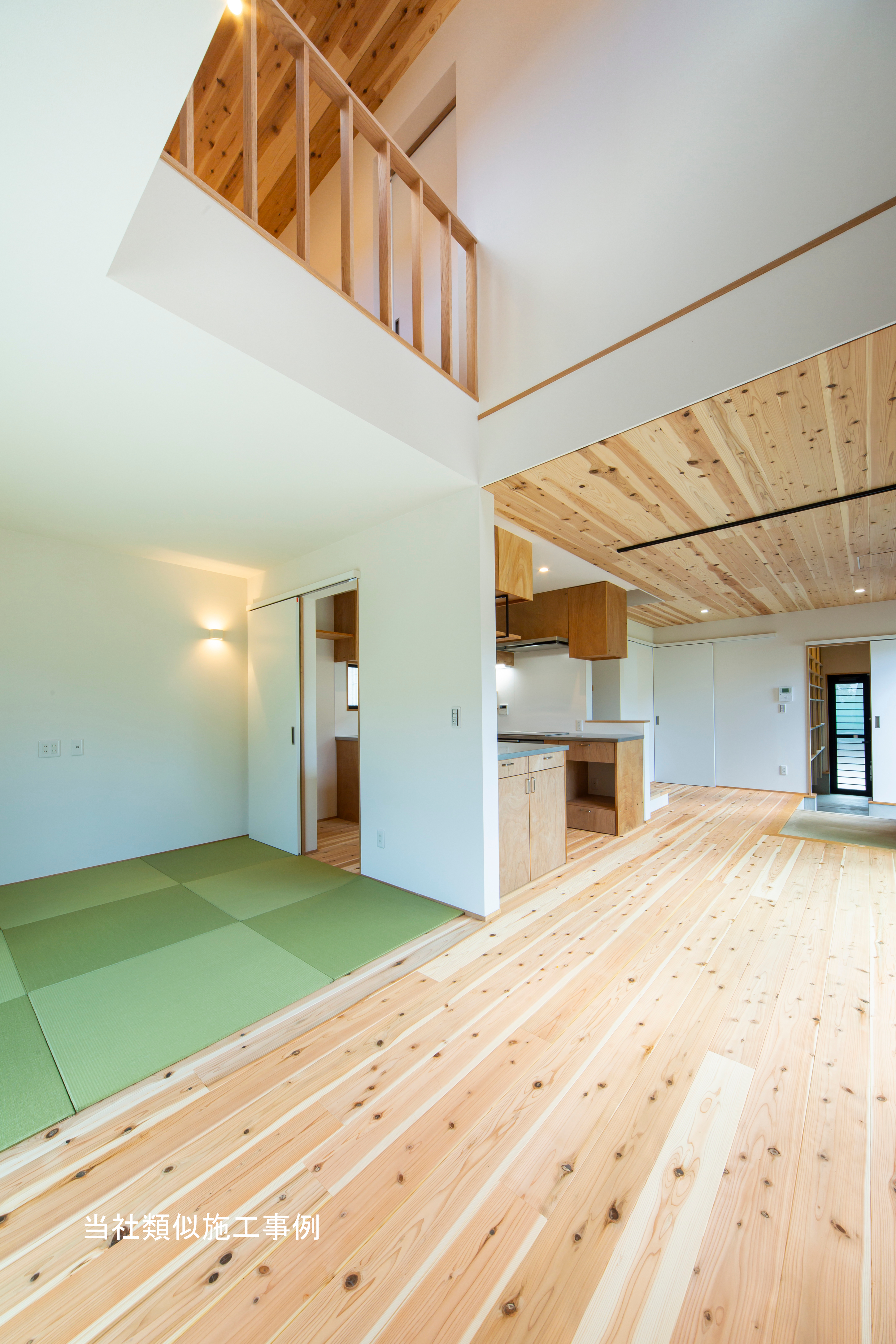 23畳程のLDKには造作の木製建具で間仕切る事のできる置きタタミの客間やⅡ型の大きな造作キッチンなどシーンに合わせてフレキシブルに使える仕掛けがたくさん。