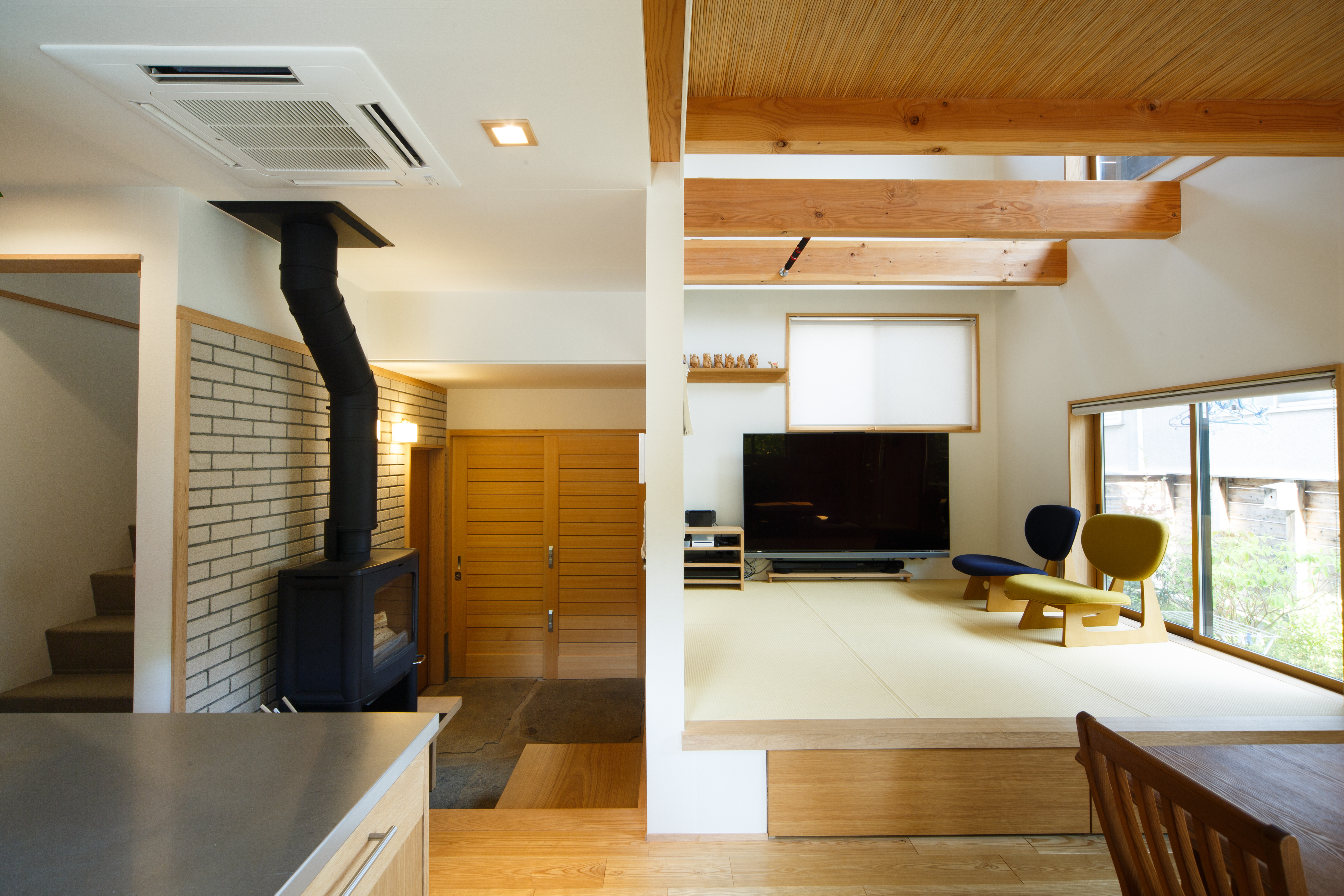 室内の間仕切りを可能な限り省略して、空気と光が回遊できるように配慮。