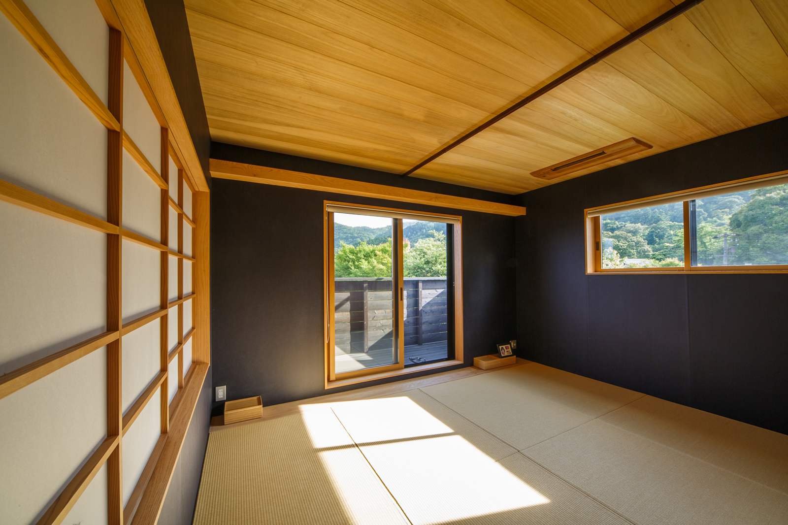 しっくいと和紙、木とタイルと石、経年変化のある物、ない物を混在させることで年季を感じることのできる贅沢な住まいです。
