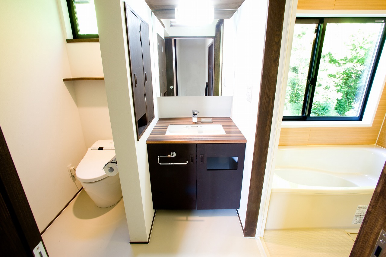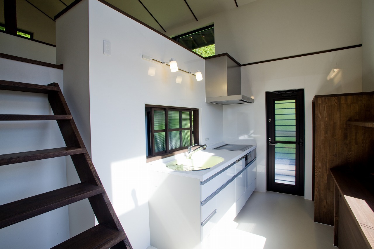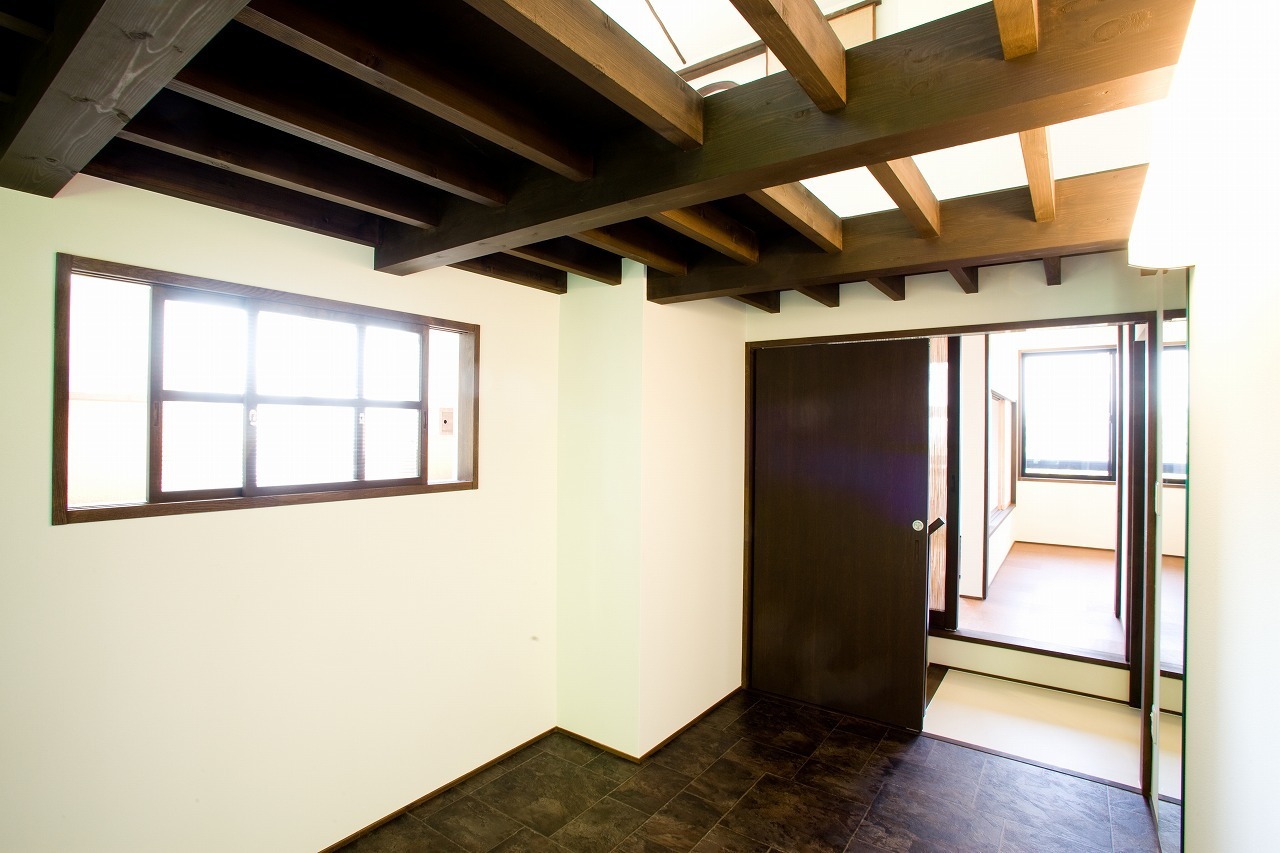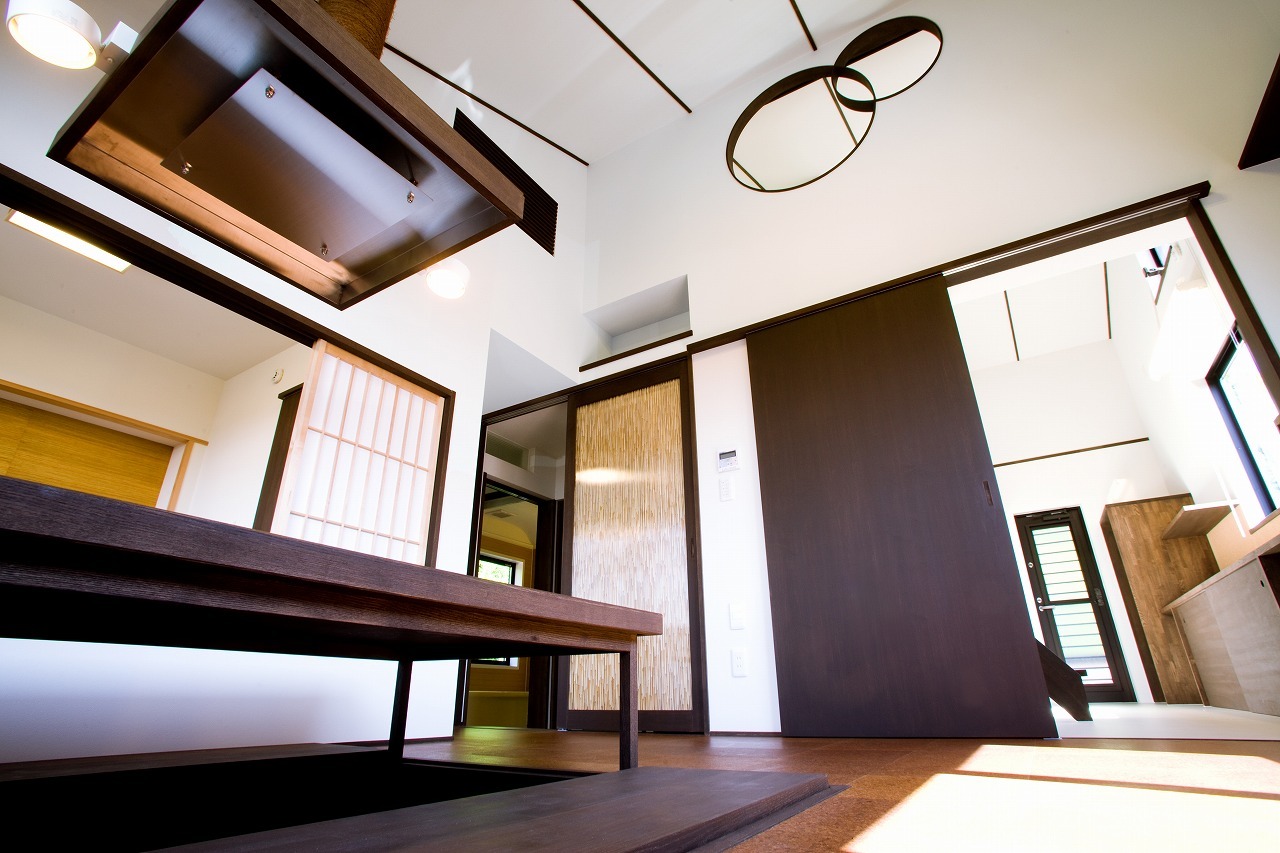 緑多く閑静な地域に建つモダンな和風住宅、屋根は瓦と板金を併用して軒を深くとりつつ軽やかに仕上げました。内装は鉄、木、和紙、コルクなど天然素材とソリッドな素材を融和させて凛とした上質な空間に仕上げています。空間構成はスキップフロアーで各階を繋ぎ、どこにいても視線の変化が楽しめます。