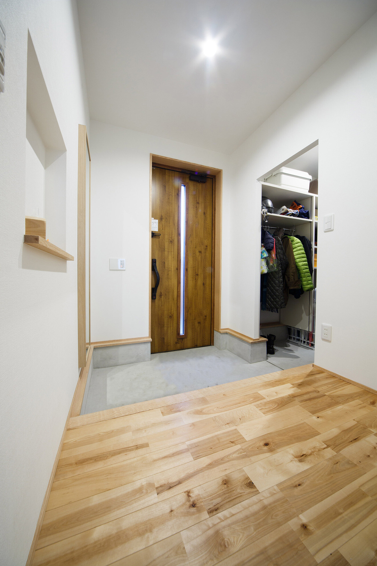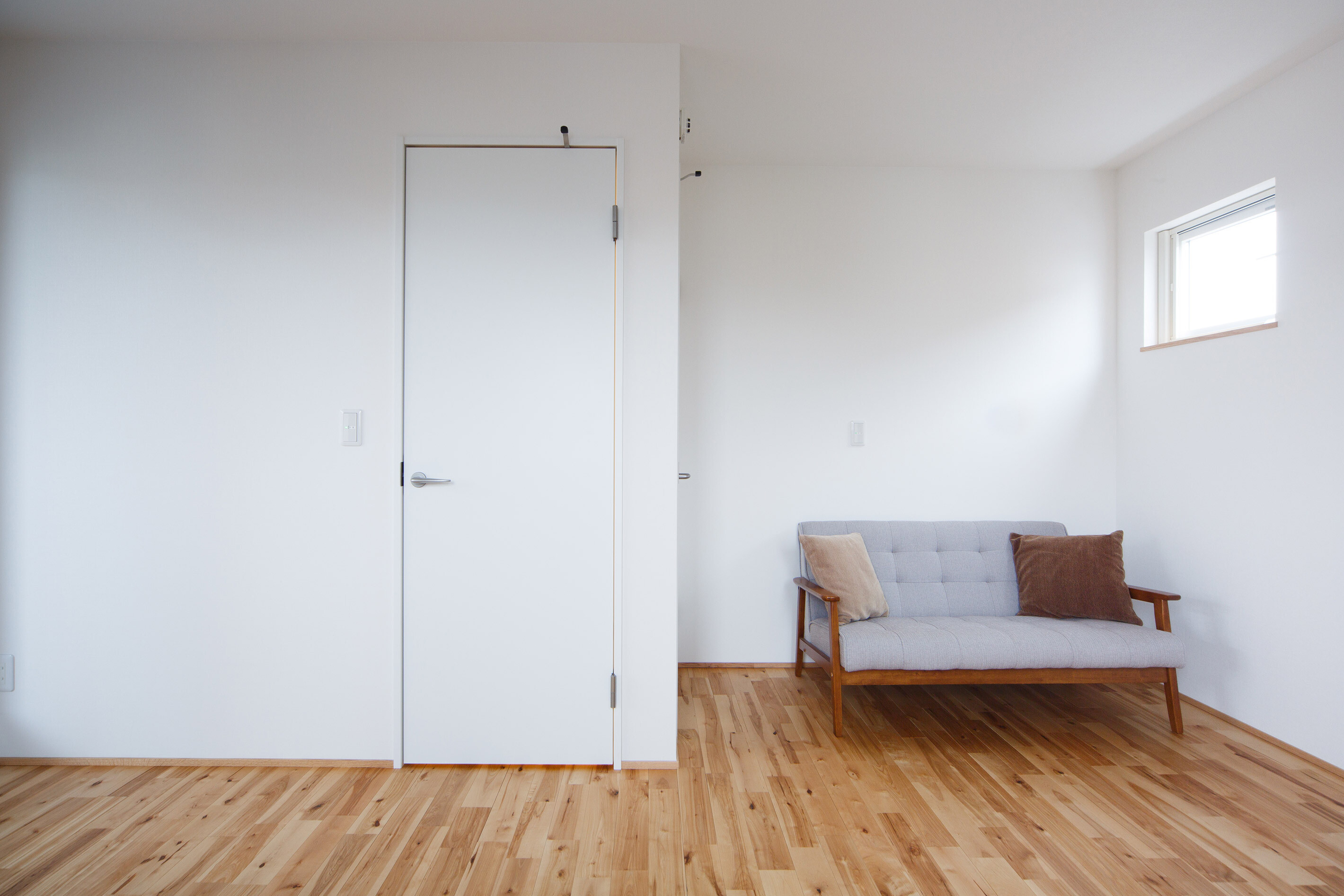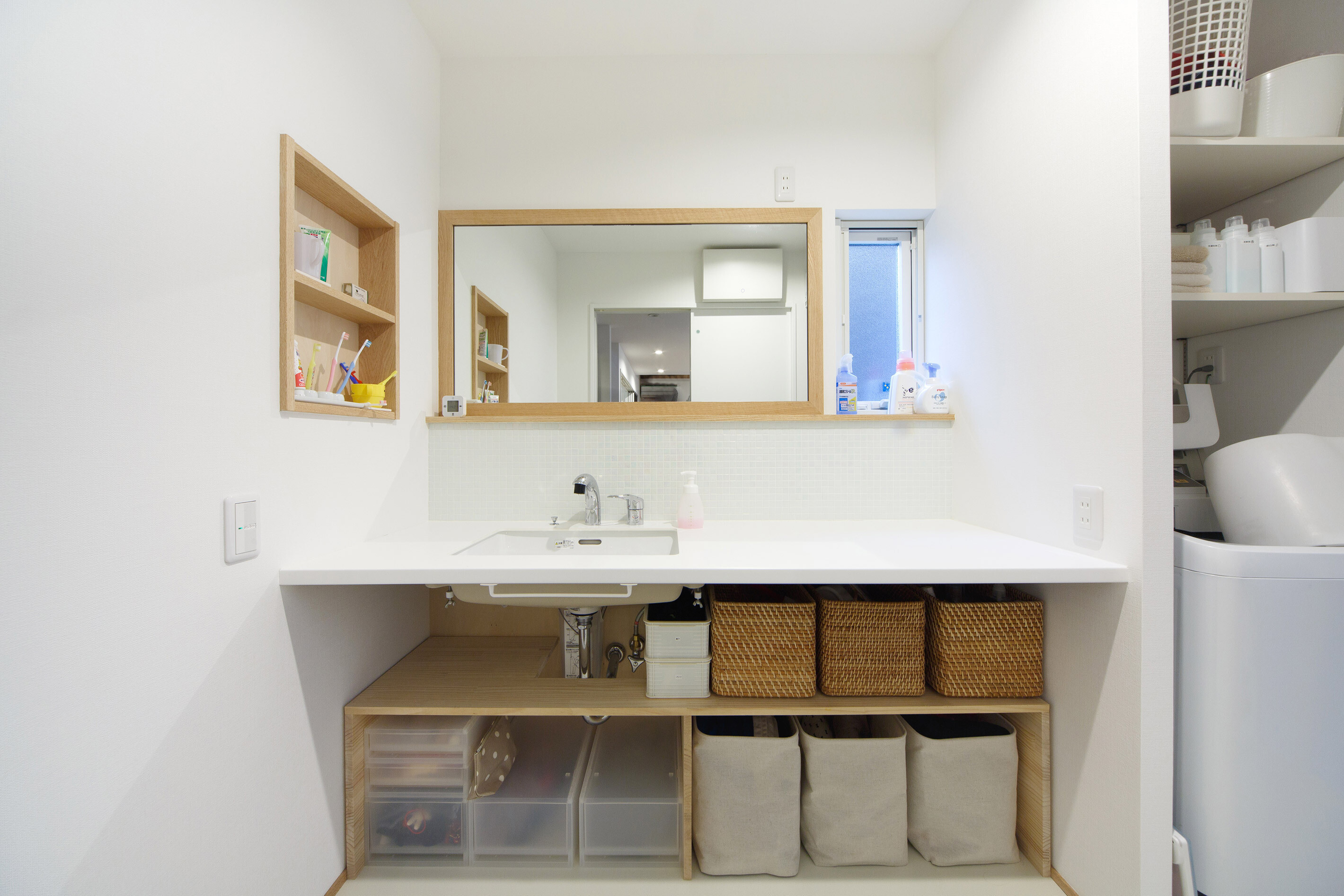 住宅地の高台に建つ一邸。シンプルな構成の中にどこか温かみを感じさせるようなフォルムや素材で設計されています。高台に臨むリビングは外部の視線に干渉されないようにしながらも明るく風の抜ける心地よい空間となっています。