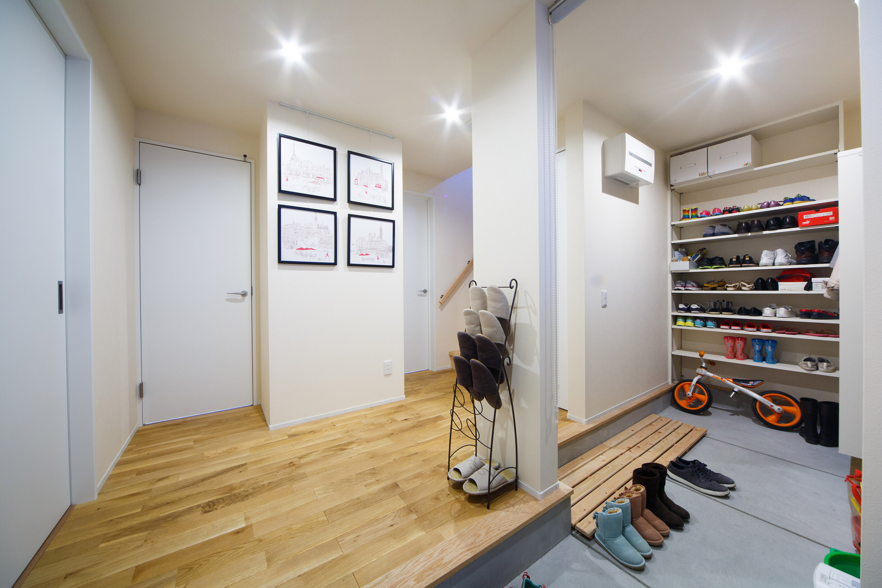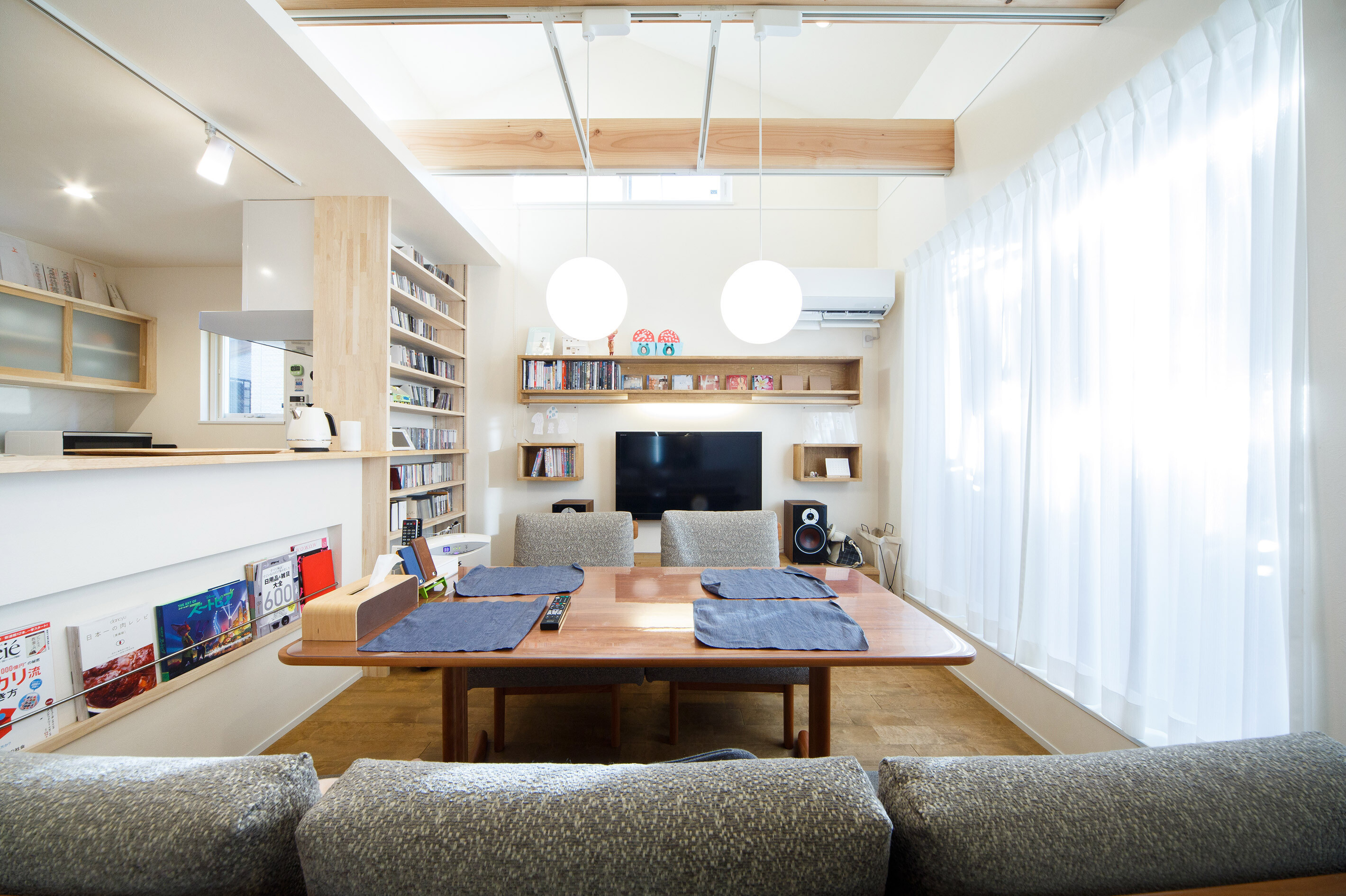 家族の距離感を大切に考え自然と会話が生まれる空間をテーマに設計しました。用途のあるスペースにはしっかりと機能性を持つ広さを確保し、コンパクトだけれどもなんだか居心地の良いリビングダイニング。スケール感の素敵なお家になっています。