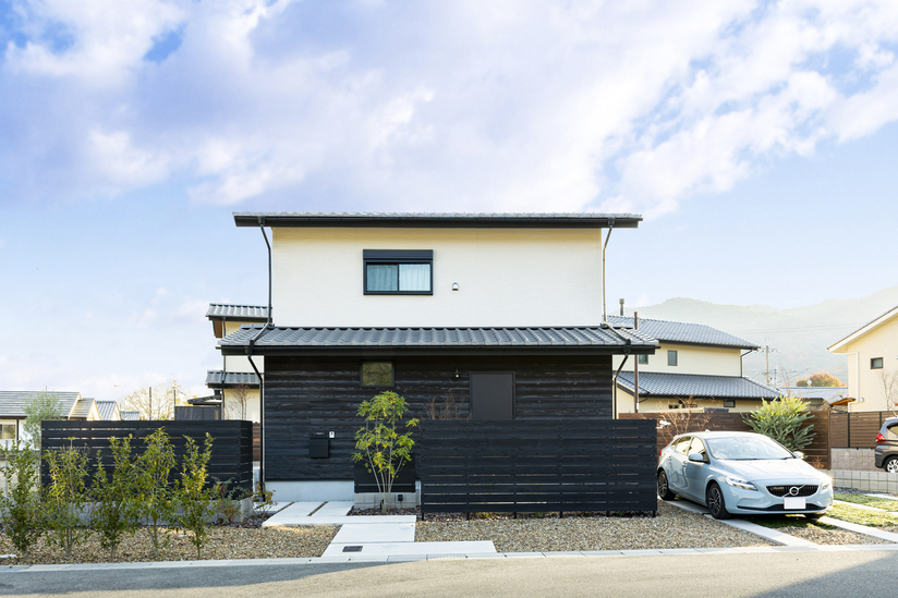 風光明媚な平等院近くに建つ住宅、外観は長く続く歴史的な街並みに配慮し軒を低く設計した和風意匠。内部空間はトップライトからの光を中心に吹抜けを設けたLDKを配置し、プライベートコートとも一体化を目指す。光と風を感じることのできる空間に仕上げました。