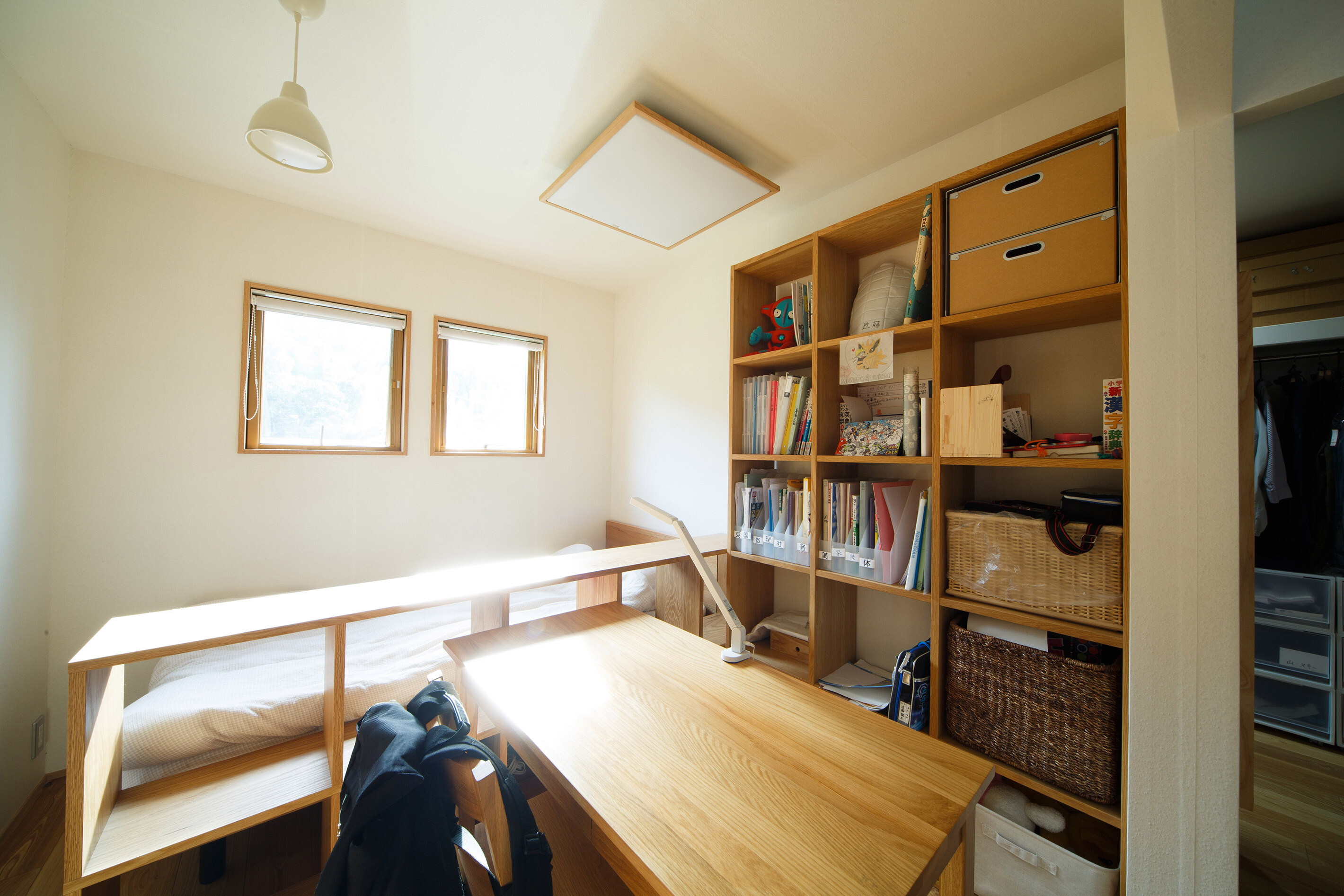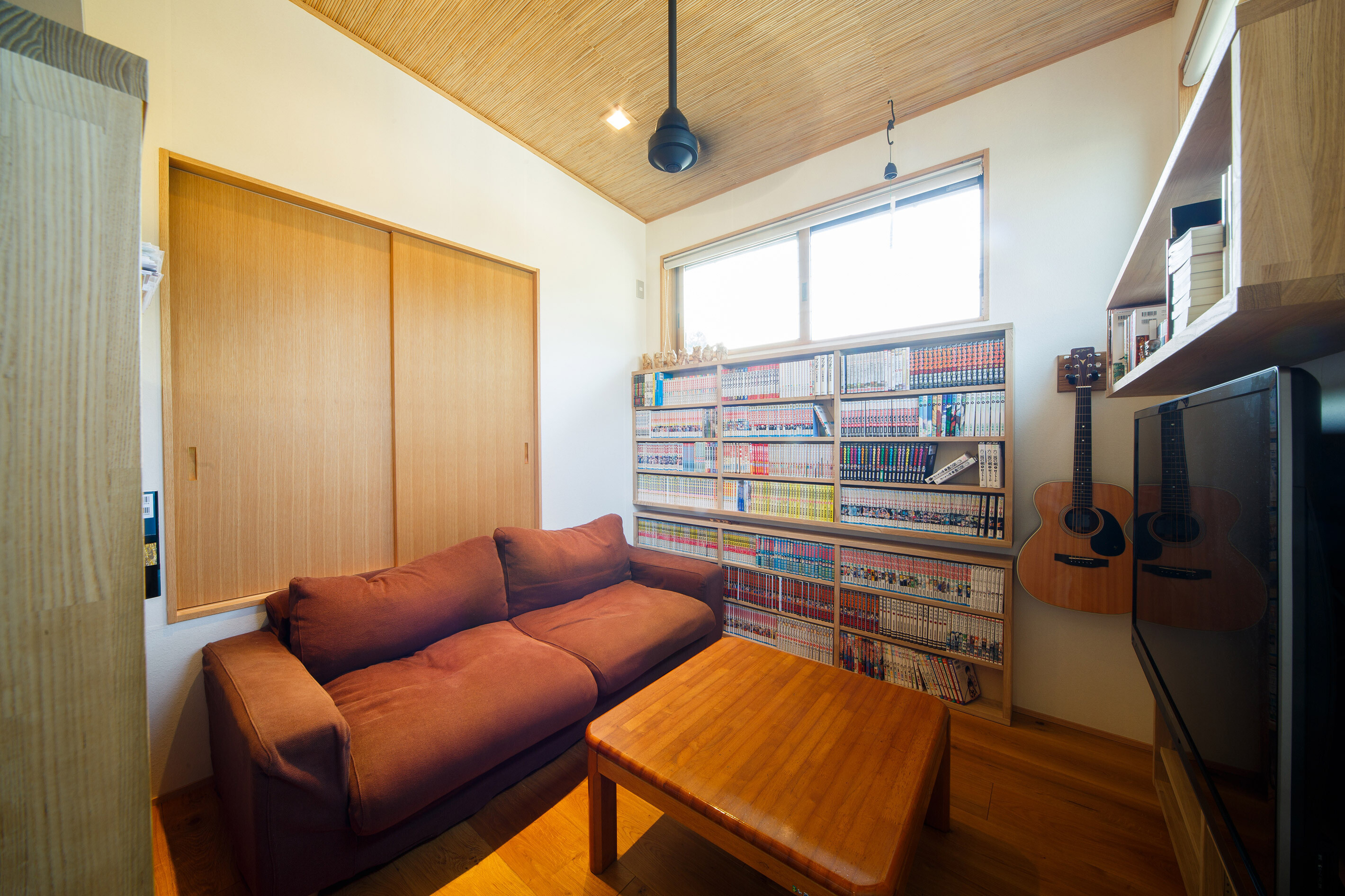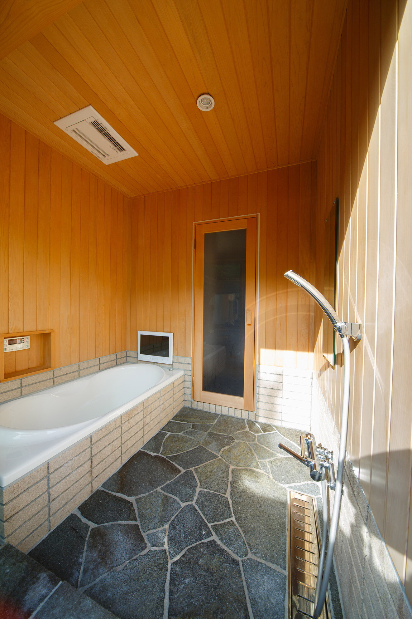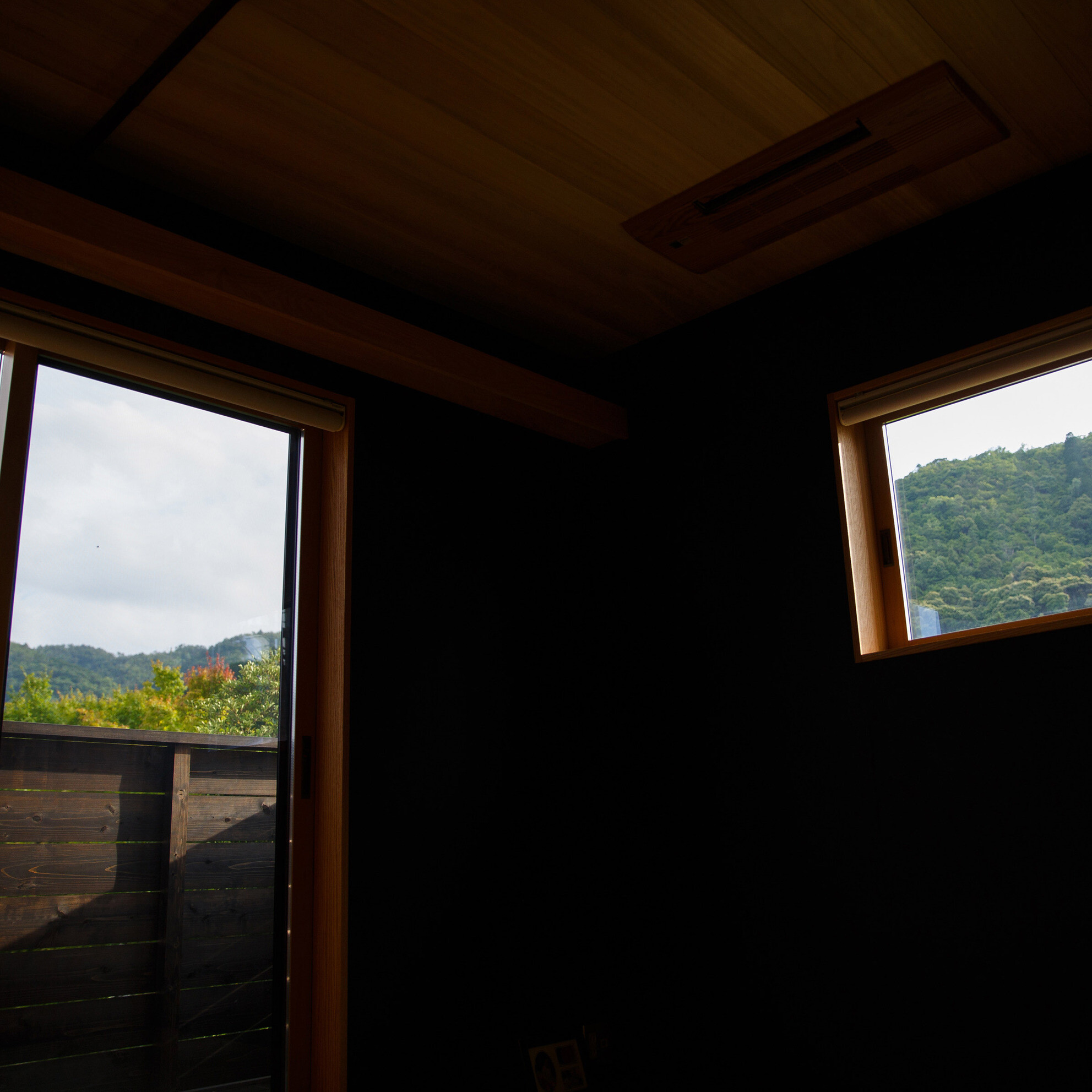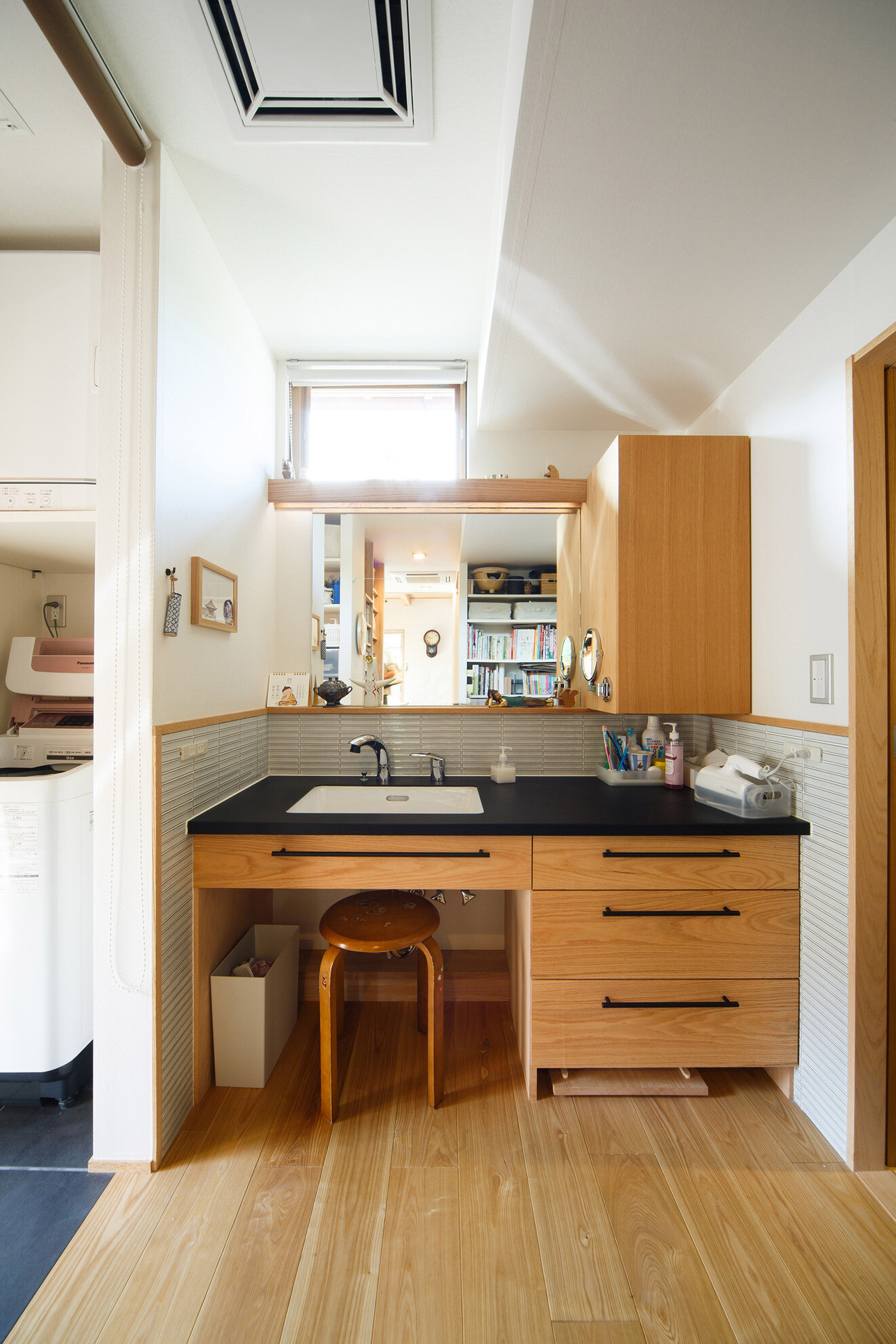 風致地区にたたずむ一邸。室内の間仕切りを可能な限り省略して、空気と光が回遊できるように配慮。その延長に人の動線を重ねて各部屋を配置しました。しっくいと和紙、木とタイルと石、経年変化のある物、ない物を混在させることで年季を感じることのできる贅沢な住まいです。