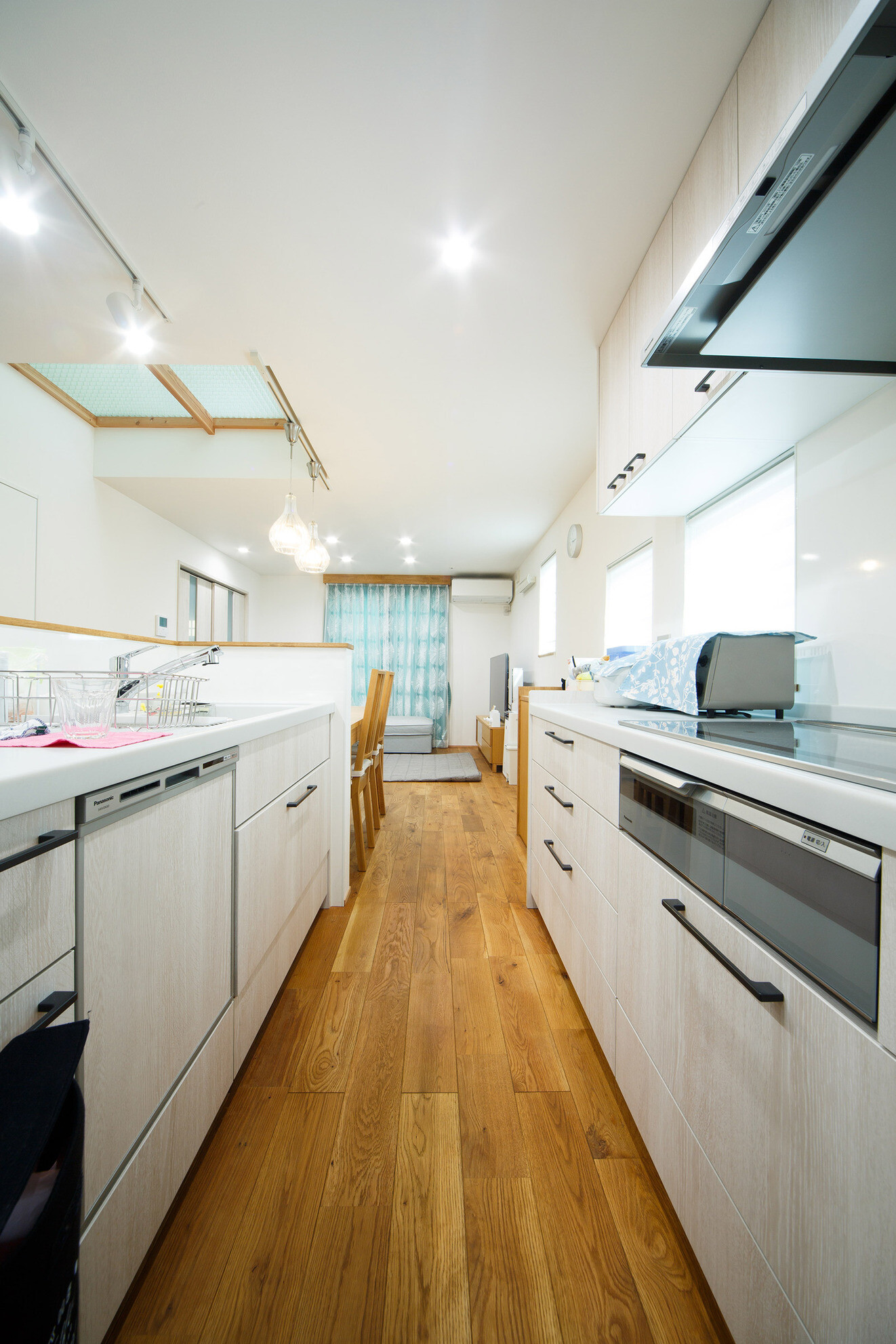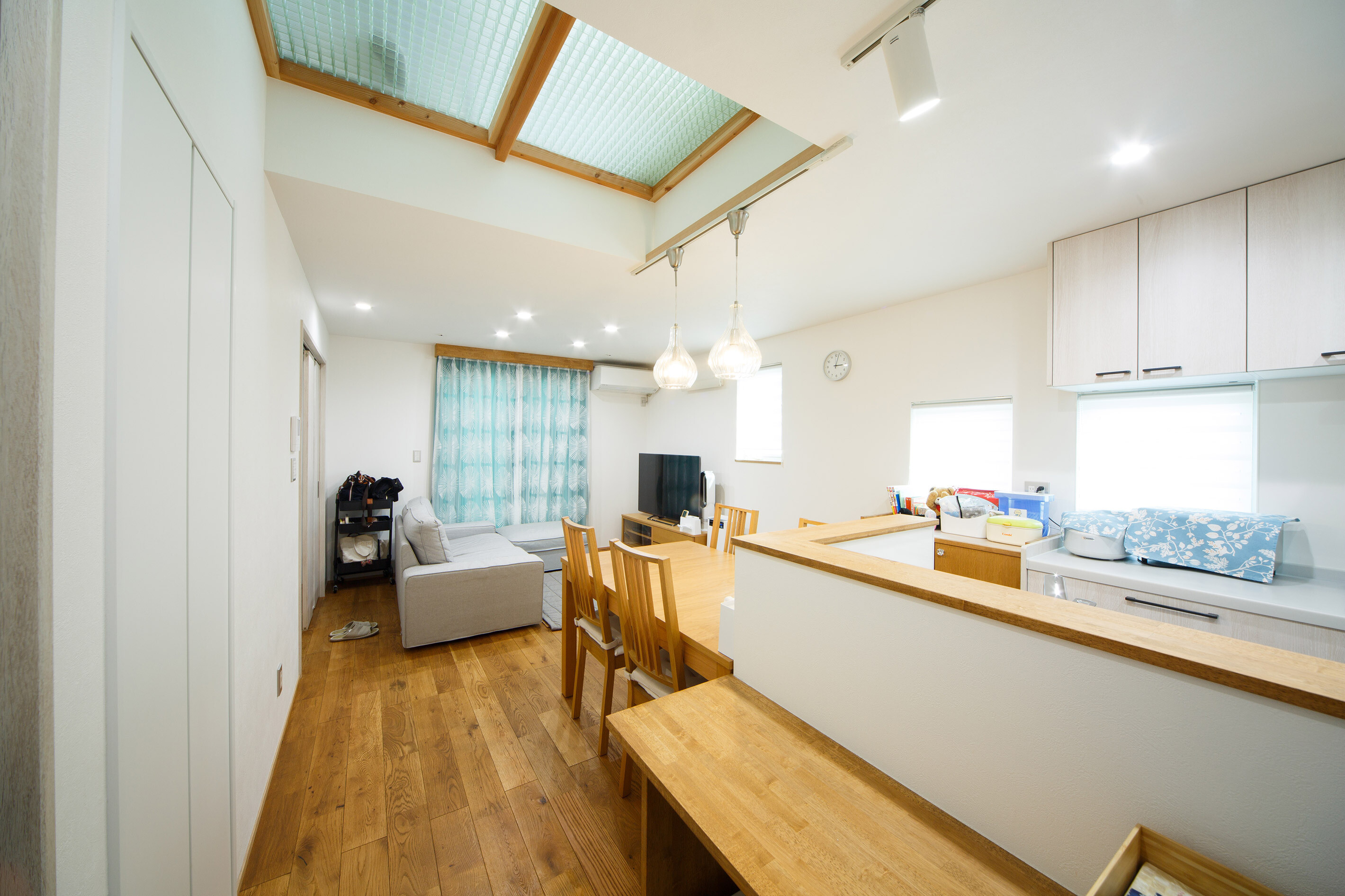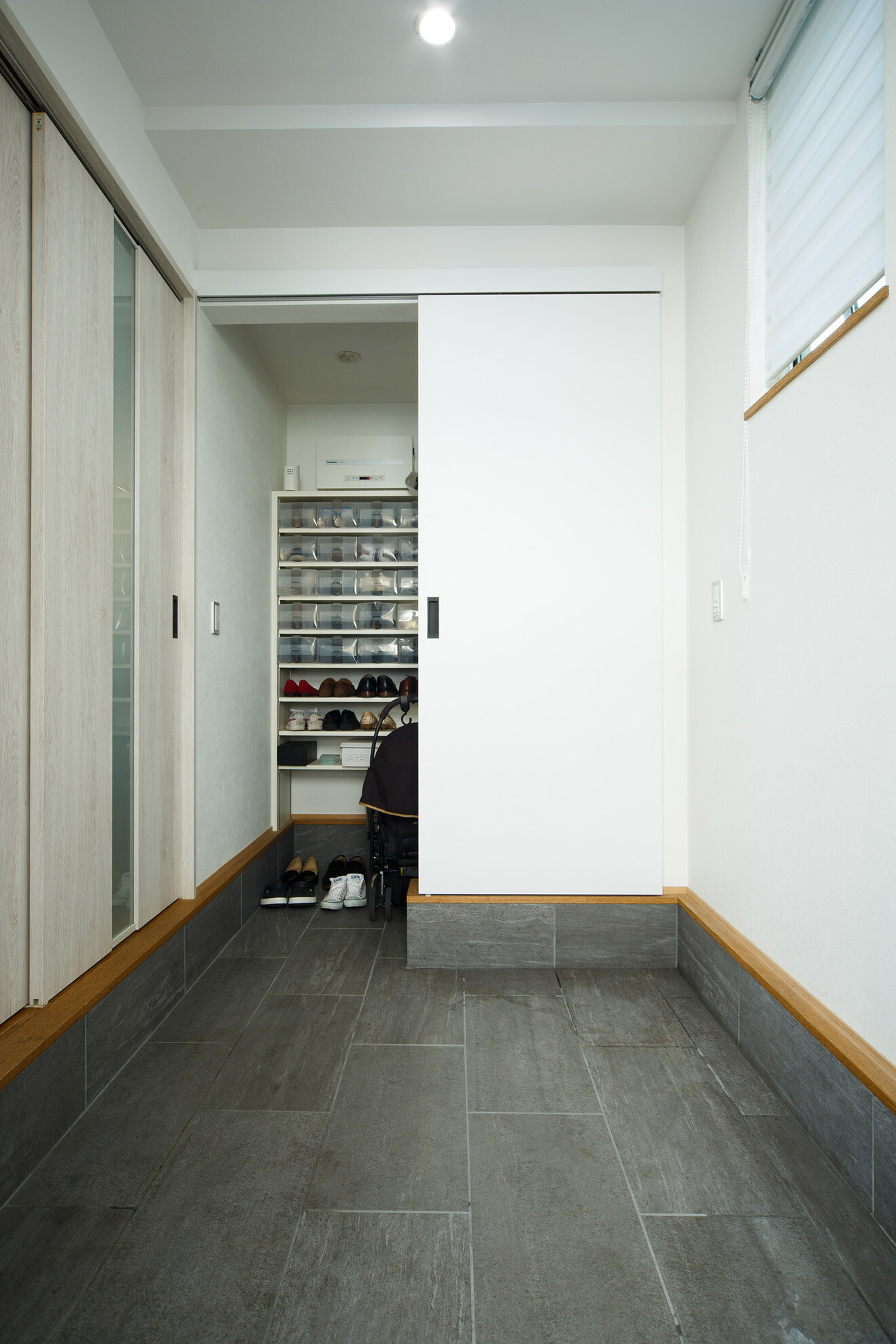 形状が整っていることや機能と意匠美のバランスを大切に生活実用性の高いお家をテーマに設計しました。LDK~パントリー~洗面~LDKと回遊式の間取りやスッキリとした玄関を実現するSCLなど間取りからも生活のイメージの沸きやすい清潔感のある空間となっています。