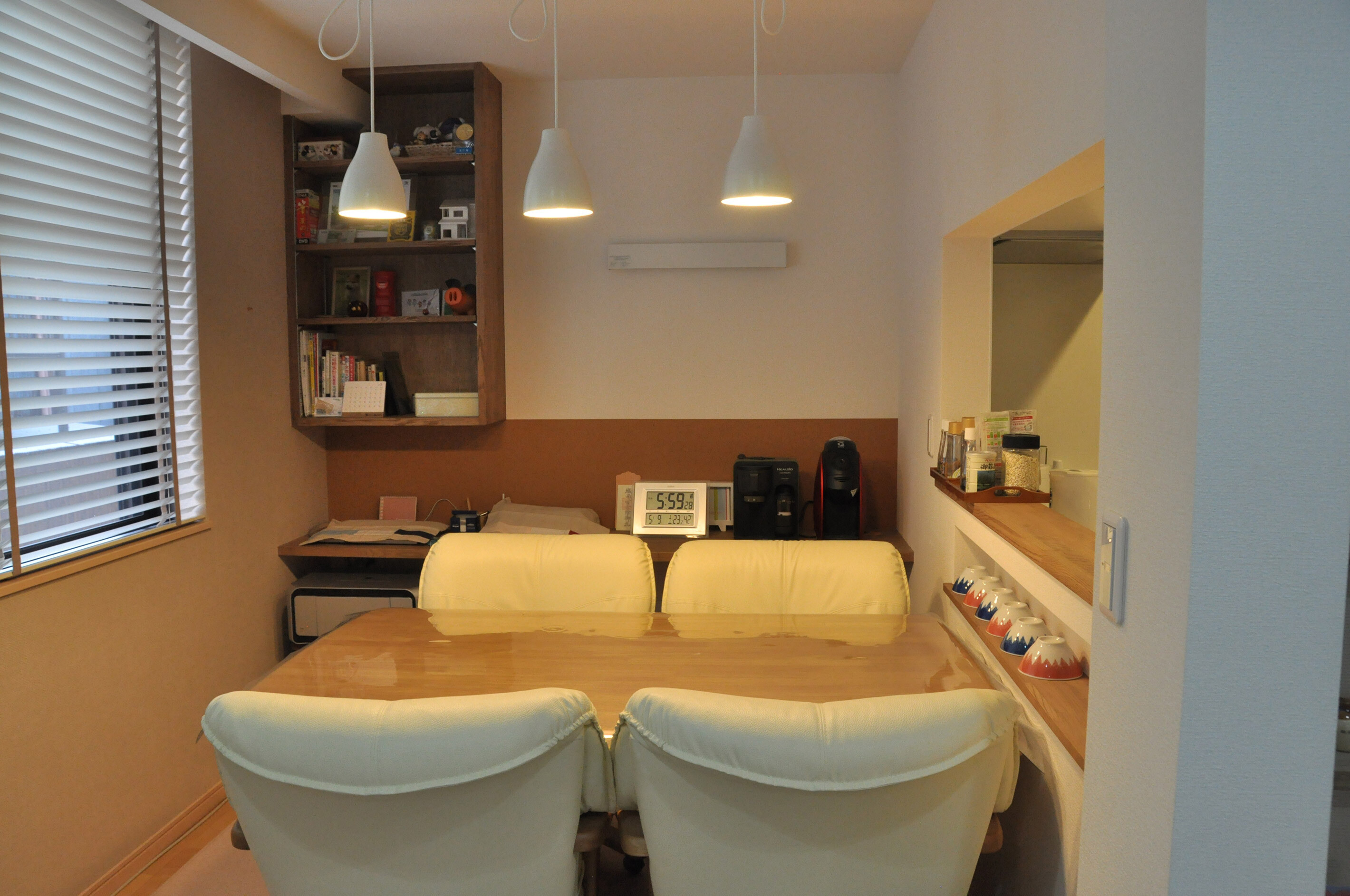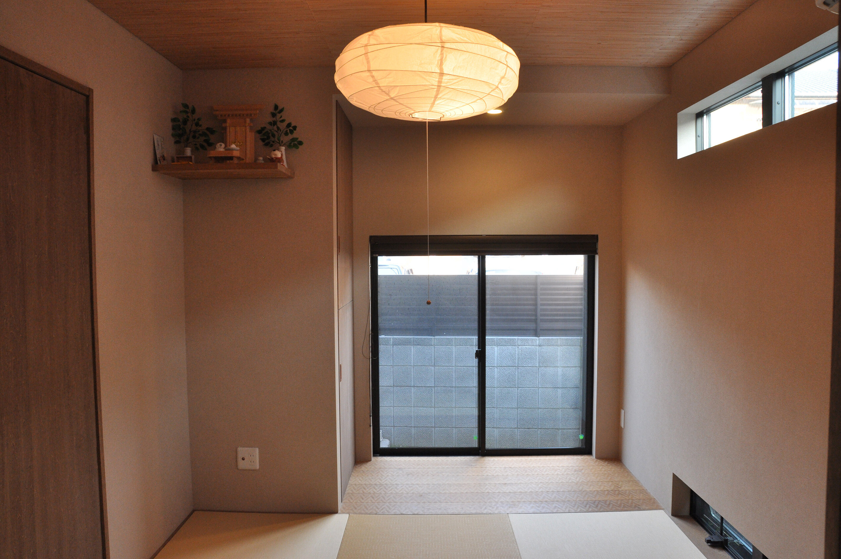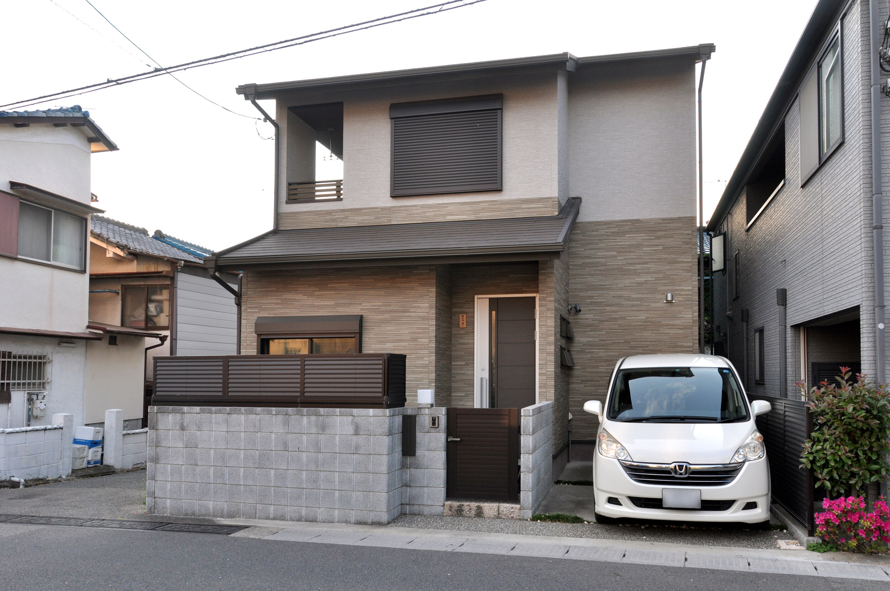 閑静な住宅街に建つ一邸。外観は周囲の景観に溶け込むようにやさしく設計。北側の窓より柔らかな光の入る和室を軸に間取りを配置しました。小スペースには効率の良い造作家具を。