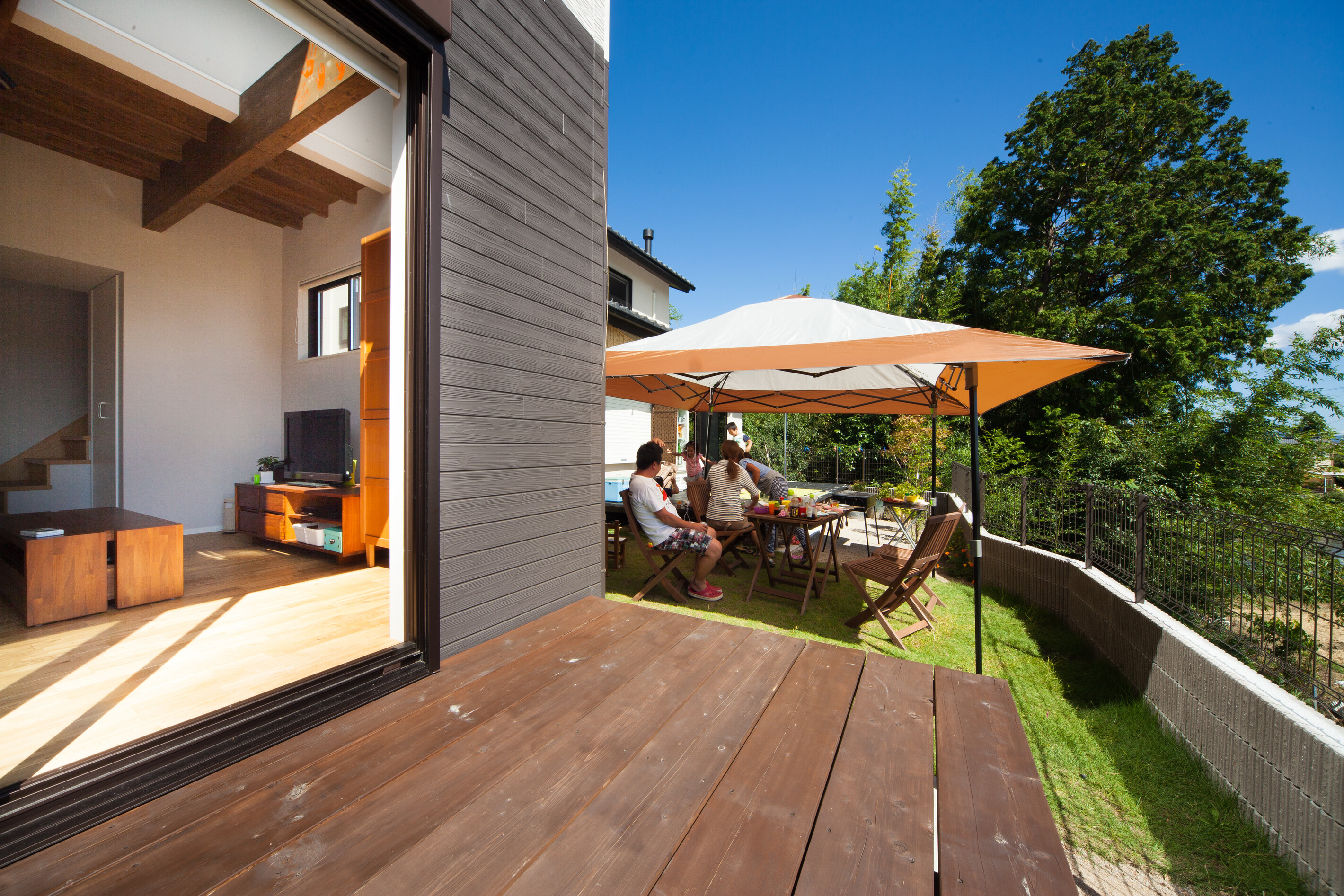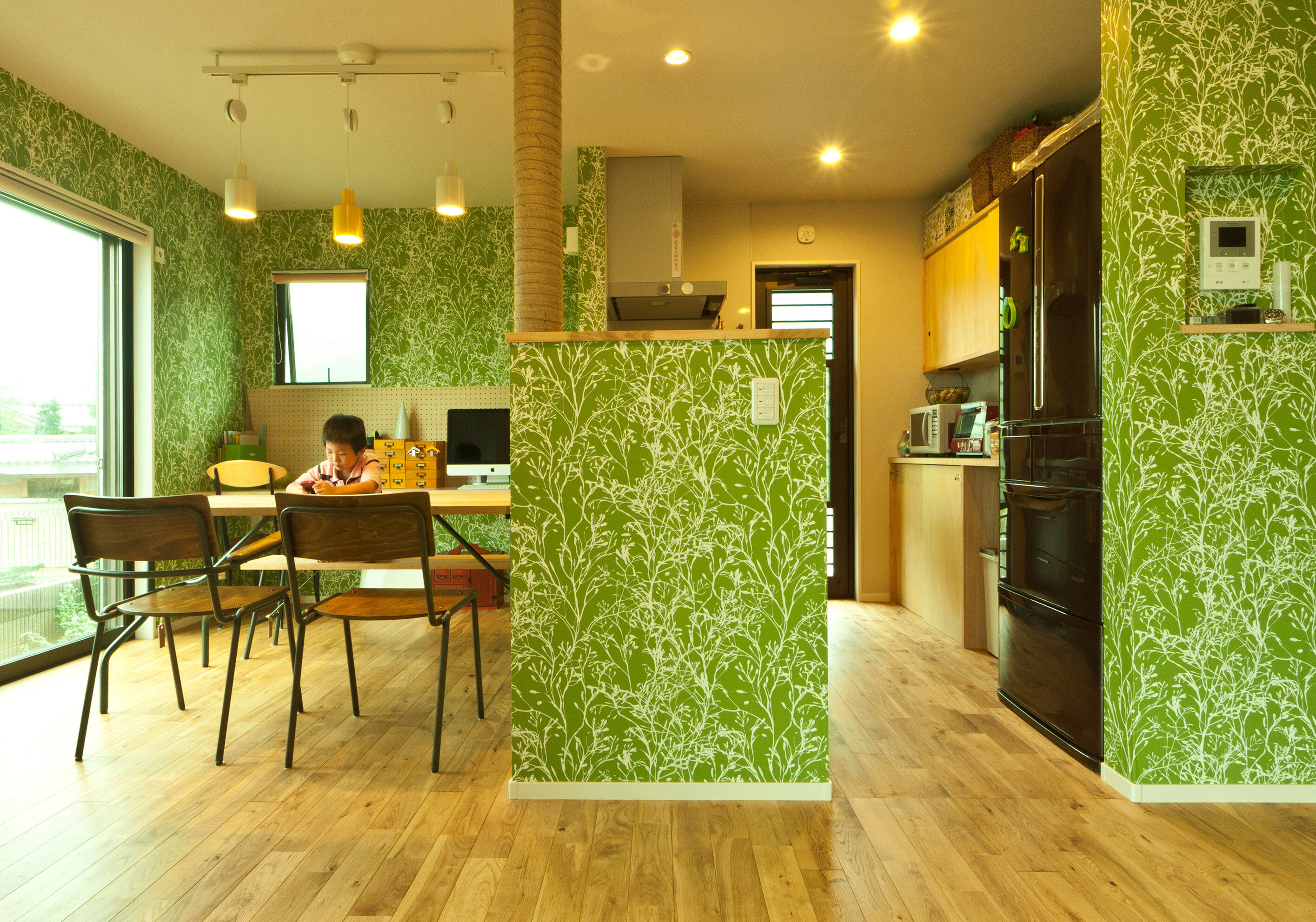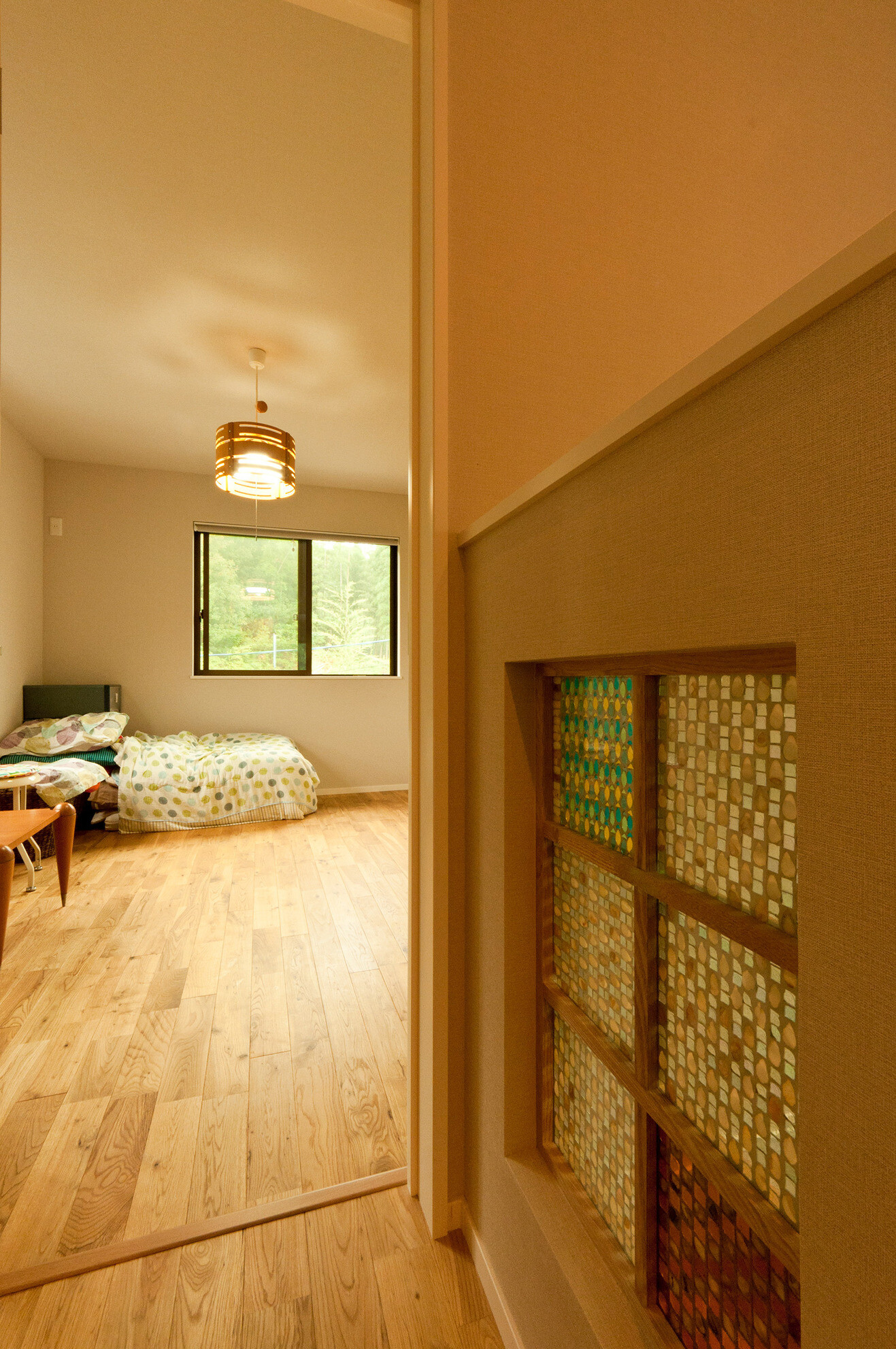 窓から広がる風景を十分に感じることが出来るように各部屋を適切に配置、光と風の流れる明るい家になりました。お気に入りの家具が空間に溶け込むように無駄なデザインを抑え、一部に造作の家具を製作し好きな小物と一体化しました。