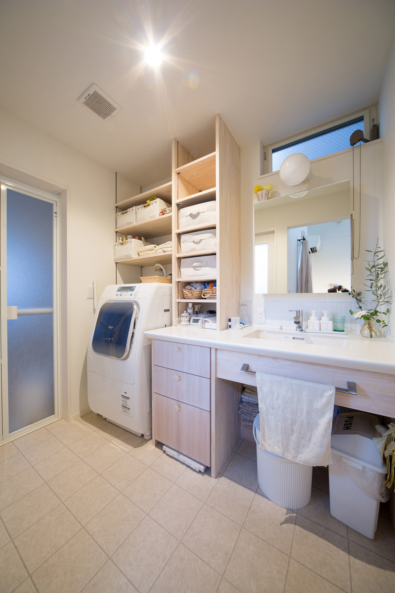 仕事部屋に裁縫スペース。家事動線+α自分らしい使い勝手を考え抜いた水廻り。どんな風に生活したいかをじっくり考える事で必然的に生まれた、とことん住まい手の想いが詰まった空間になっています。