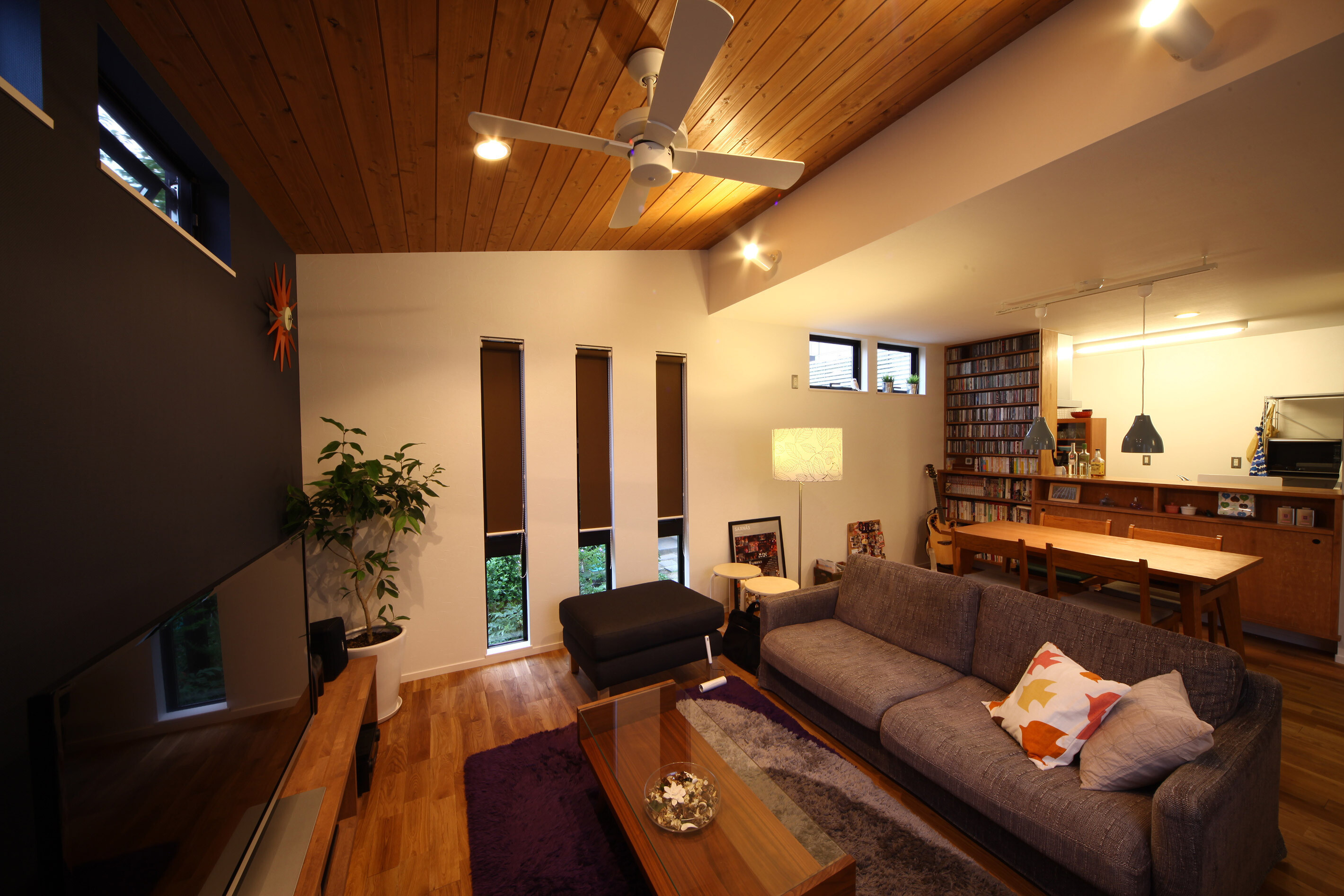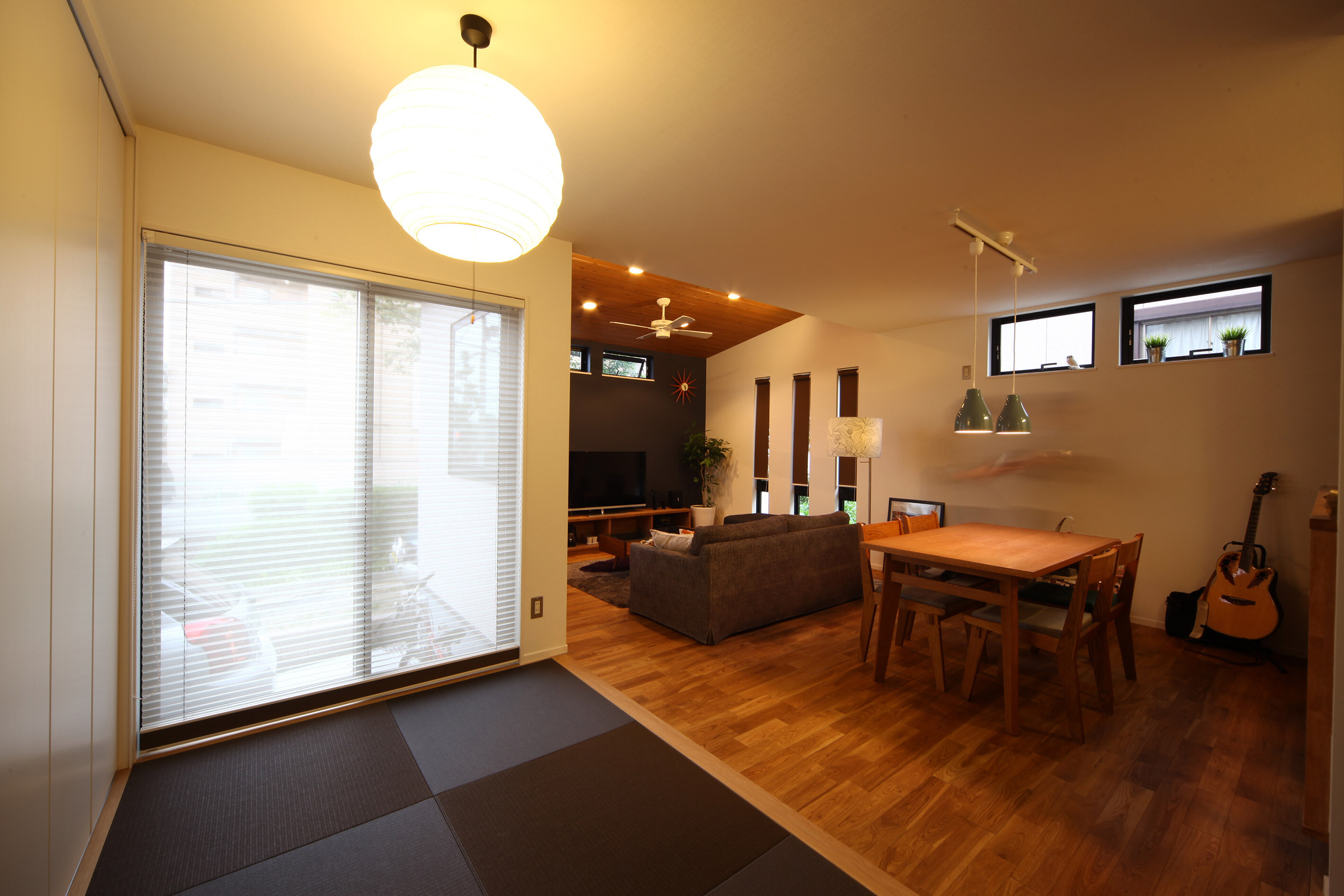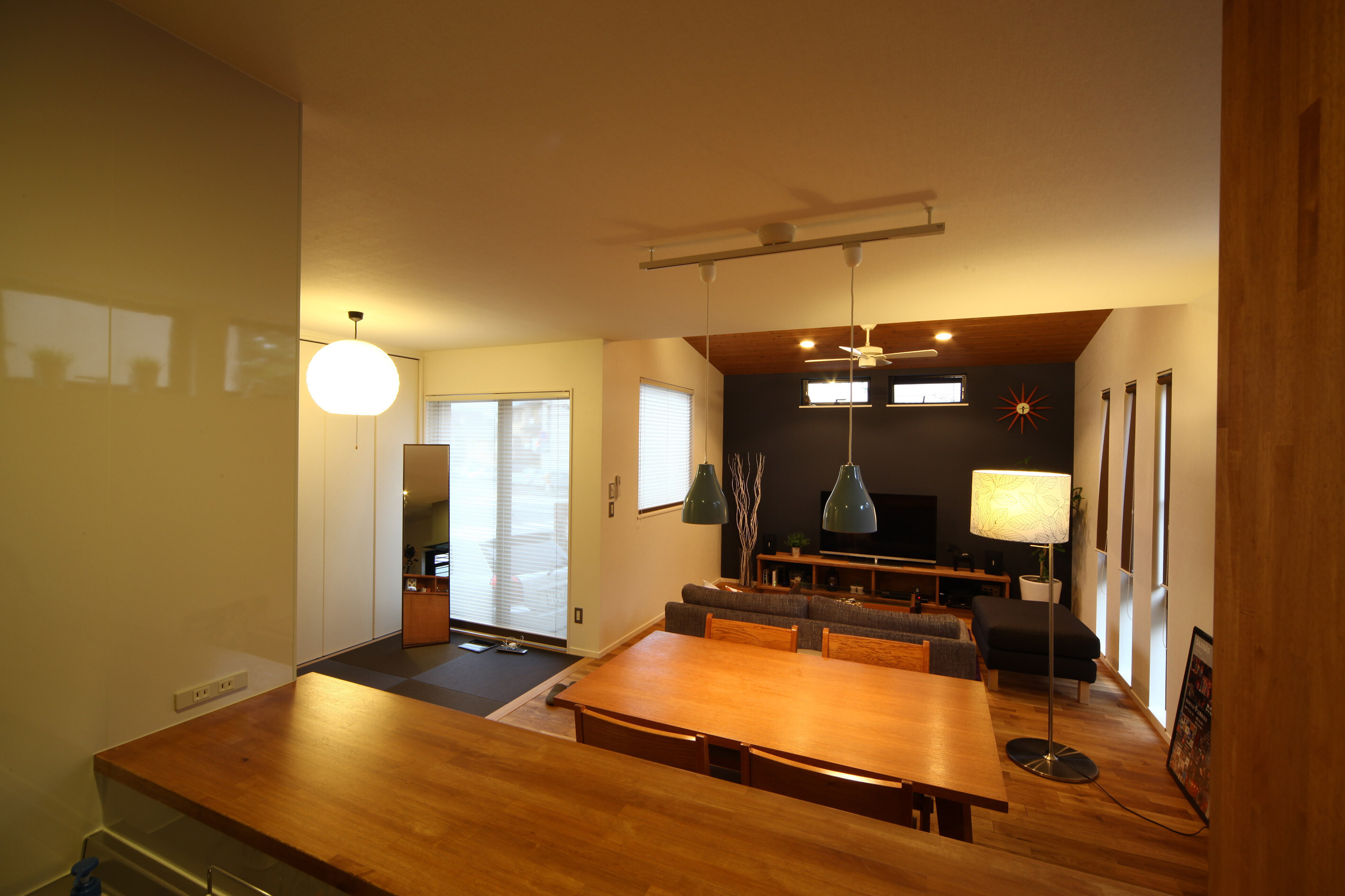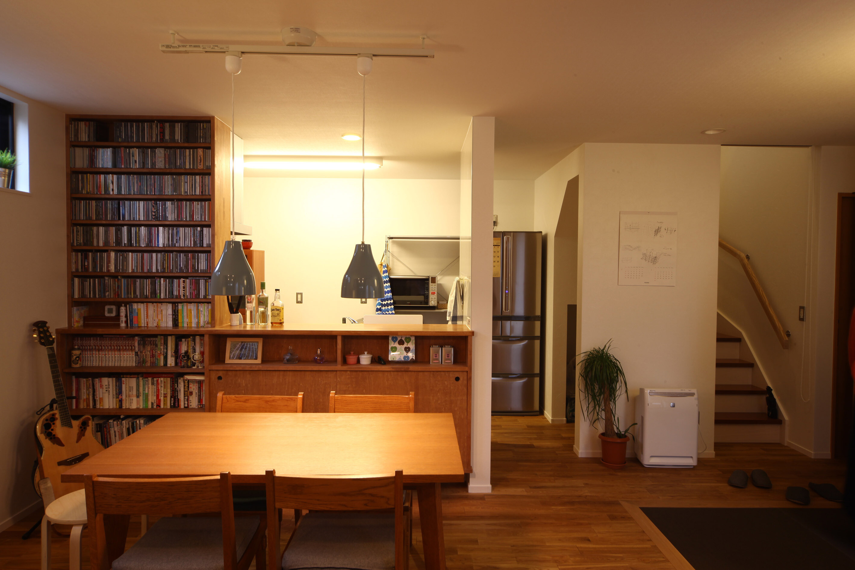 落ち着いた内装空間に住み手の嗜好品が配置され、オリジナリティーを感じます。家は引っ越し時が完成ではなく住み手が生活しながら造りこんでいくものということを感じさせてくれるお家です。